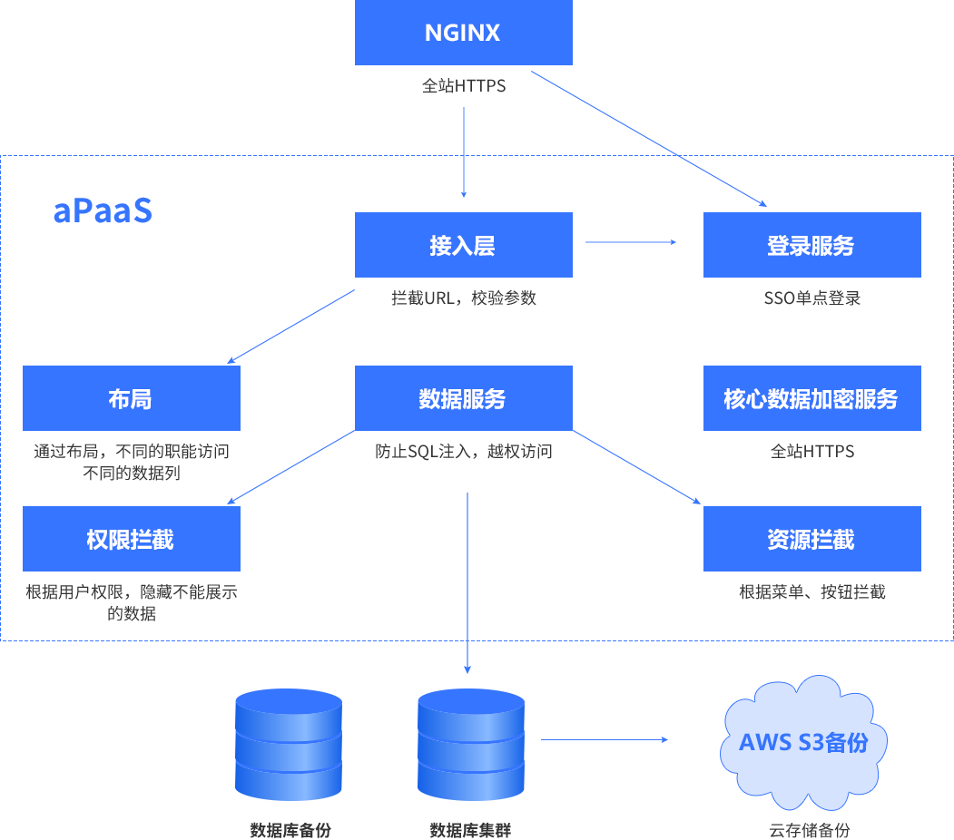 备注:::平台与业务分离,,,,开发运维只运维平台,,,业务专家生成的元数据(表/字段/运行逻辑)+业务数据全部以碎片的方式存储在DB中,,,,技术人员无法解读,,只有业务专家授权后才能导出元数据+业务数据
