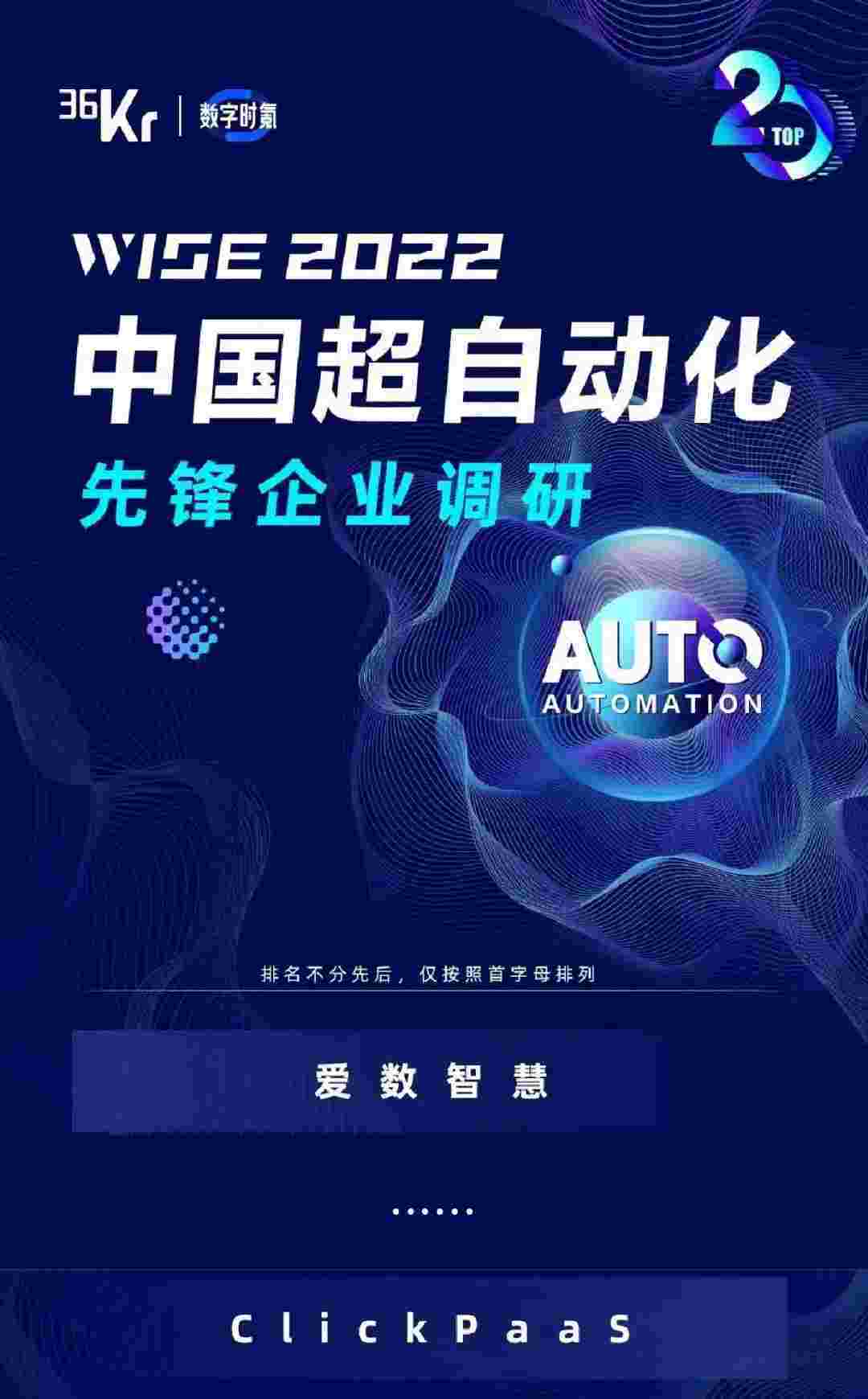8月10日,,由36Kr主办的WISE 2022中国超自动化峰会在杭州成功举办。。。。NO钱包作为国内低代码PaaS平台的领军企业,,凭借过硬的技术实力和优质的产品能力,,,在本次峰会中实力入选「2022年中国超自动化先锋企业」20强。。。